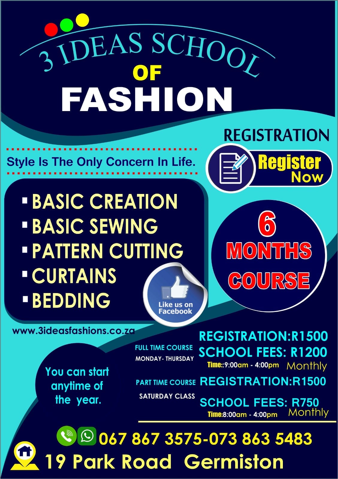 3 Ideas School of Fashion and Designing Pty Ltd was founded in 2008 and was registered in 2014. The company is based in East Rand (Germiston) South Africa. It has one founding Director: Ms Nzuza Siphiwe . She is a black woman owner.